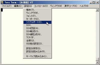 シリアルポート番号が判ったところで、シリアルポートの設定を行います。